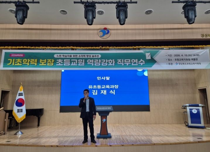 뉴한국방송뉴스통신사 신유철기자 기자 | 포항교육지원청은 4월 15일 포항교육지원청 여울관에서 포항·영덕·청송 지역 기초학력 업무 담당교사 및 담임교사를 대상으로 2026 기초학력 보장 초등교원 역량강화 직무연수를 실시했다.