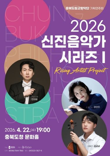 뉴한국방송뉴스통신사 권영분기자 기자 | 충북도립교향악단은 4월 22일 오후 7시, 충북도청 문화홀에서 기획연주회 ‘2026 신진음악가 시리즈Ⅰ’을 개최한다.
