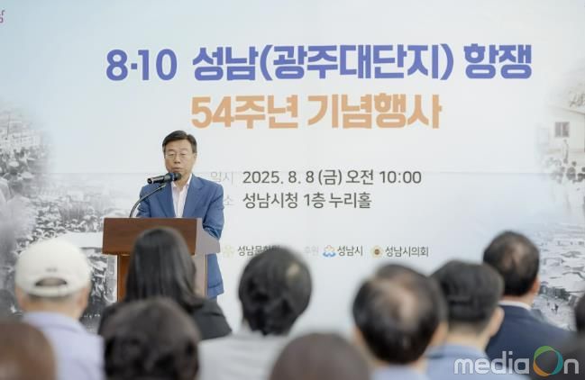신 시장은 축사를 통해 “성남시는 이주민들의 아픔과 용기 위에 세워진 도시”라며 “8·10 항쟁은 성남의 시작점이자 정체성의 근간이 되는 역사적 사건”이라고 강조했다.