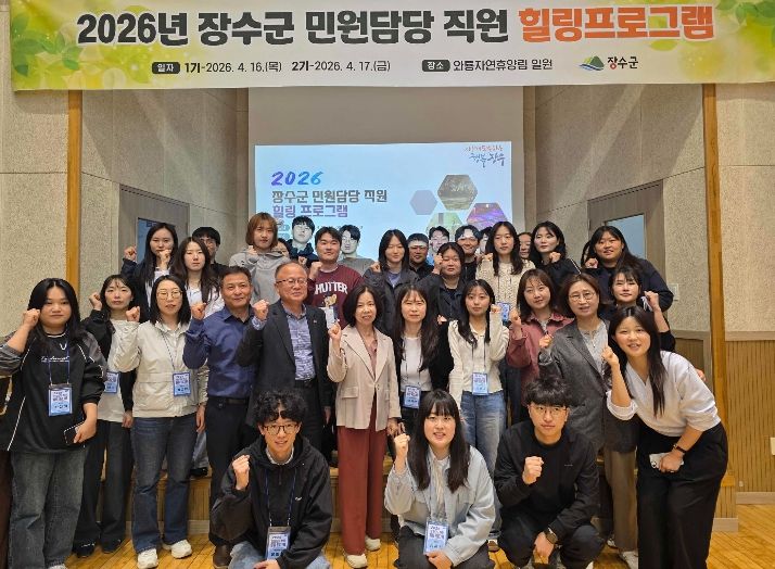 뉴한국방송뉴스통신사 김성의 기자 | 장수군은 지난 16일부터 17일까지 와룡자연휴양림 일원에서 민원 담당 공무원의 직무 스트레스 해소와 심신 치유를 위한 ‘2026년 민원담당 직원 힐링 프로그램’을 실시했다고 밝혔다.