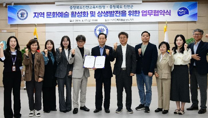 뉴한국방송뉴스통신사 권영분기자 기자 | 충청북도진천교육지원청과 진천군은 4월 17일 지역 문화예술 활성화 및 상생발전을 위한 업무협약(MOU)을 체결했다.