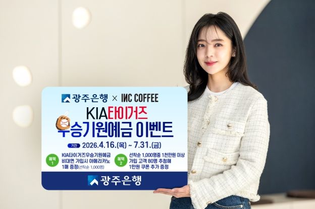 광주은행은 선착순 1,000명에게 인크커피 아메리카노 쿠폰 1매를 제공하며, 이 중 신규 금액 1천만 원 이상 가입 고객 80명을 추첨해 인크커피 1만 원권 쿠폰을 추가로 증정할 예정이다.