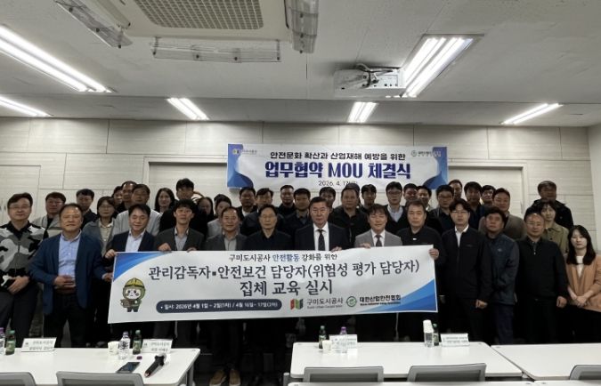 뉴한국방송뉴스통신사 신유철기자 기자 | 구미도시공사는 대한산업안전협회와 산업현장 안전문화 확산 및 근로자 산업재해 예방을 위한 업무협약(MOU)을 체결하고, 안전 중심의 경영체계 구축을 위한 협력에 나섰다.