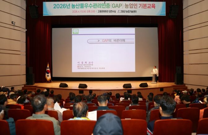 뉴한국방송뉴스통신사 신다은기자 기자 | 고흥군은 지난 15일 고흥문화회관 김연수실에서 지역 농업인 344명이 참석한 가운데 2026년 농산물우수관리(GAP) 인증 농업인 기본교육을 실시했다고 밝혔다.