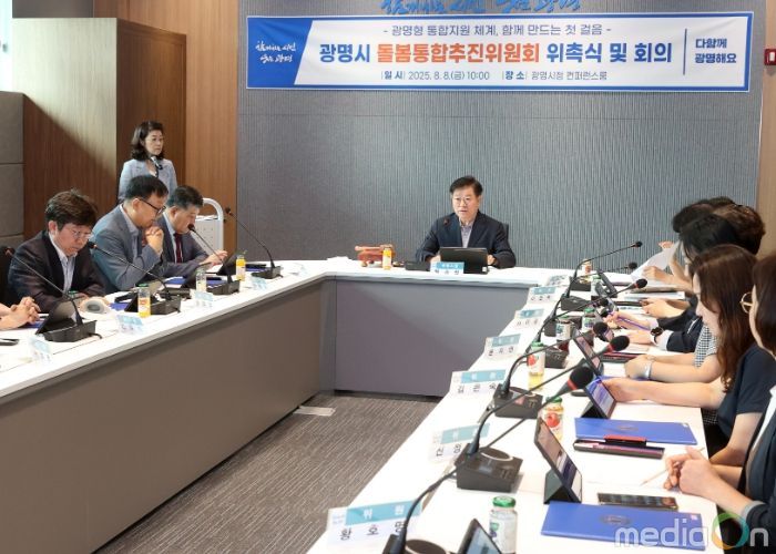 시는 8일 시청 컨퍼런스룸에서 ‘광명시 돌봄통합추진위원회 위촉식 및 제1차 회의’를 열고, 2026년 3월 시행 예정인 ‘돌봄통합지원법’에 대비한 지역 중심 통합지원체계 구축에 착수했다.