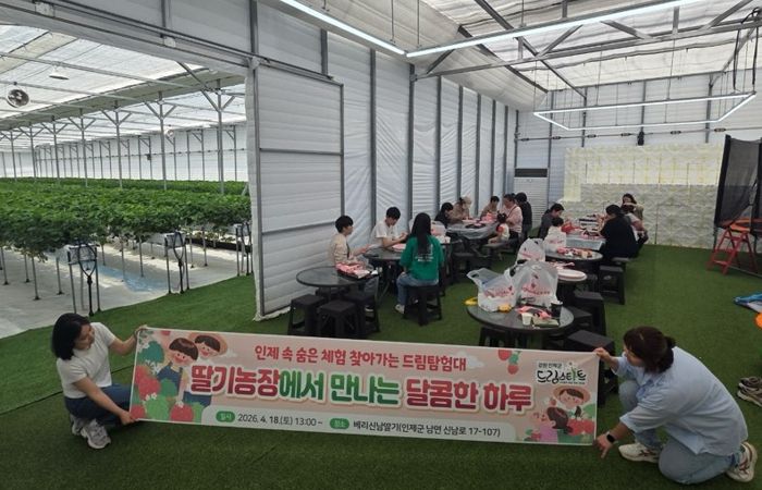 이어 18일에는 7가정, 18명이 참여한 가운데, 남면 베리신남딸기 농장에서 ‘딸기농장에서 만나는 달콤한 하루’ 프로그램이 진행됐다.