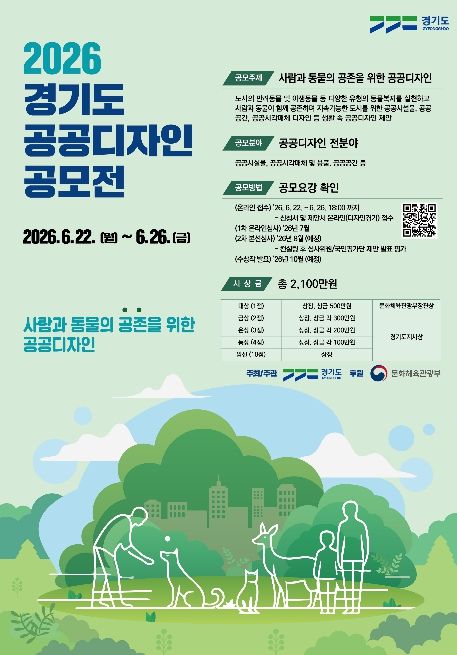 뉴한국방송뉴스통신사 신유철기자 기자 | 경기도가 ‘사람과 동물의 공존을 위한 공공디자인’이란 주제로 제20회 ‘2026년 경기도 공공디자인 공모전’을 6월 22일부터 26일까지 개최한다.