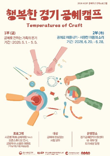뉴한국방송뉴스통신사 신유철기자 기자 | 한국도자재단이 오는 5월 1일부터 경기공예창작지원센터(여주) 일원에서 체험·전시·이벤트를 결합한 참여형 프로그램 ‘2026 행복한 경기 공예 캠프’를 개최한다.