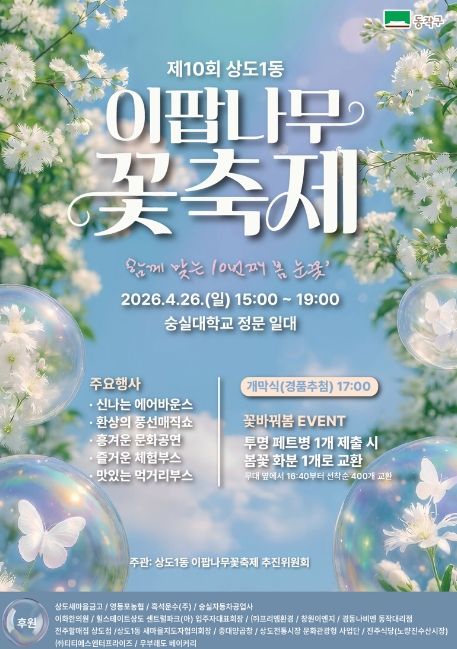 뉴한국방송뉴스통신사 신유철기자 기자 | 동작구는 오는 26일 숭실대학교 정문 일대(상도로 369)에서 ‘제10회 이팝나무 꽃 축제’를 개최한다고 밝혔다.