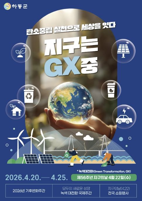 뉴한국방송뉴스통신사 신유철기자 기자 | 하동군은 제56주년 지구의 날을 맞아 4월 20일부터 24일까지 ‘제18회 기후변화주간’을 운영한다고 밝혔다.