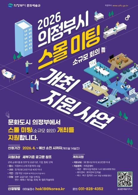 뉴한국방송뉴스통신사 신유철기자 기자 | 의정부시는 관외에 소재지를 둔 기관 및 단체 등을 대상으로 ‘2026 의정부시 스몰미팅(소규모 회의) 개최 지원사업’을 추진한다.