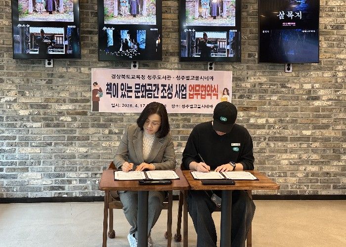 뉴한국방송뉴스통신사 신유철기자 기자 | 경상북도교육청 성주도서관은 성주별고을시네마와 '책이 있는 문화공간 조성'사업 추진을 위한 업무협약을 체결하고, 작은영화관과 연계한 독서문화 확산에 나선다.