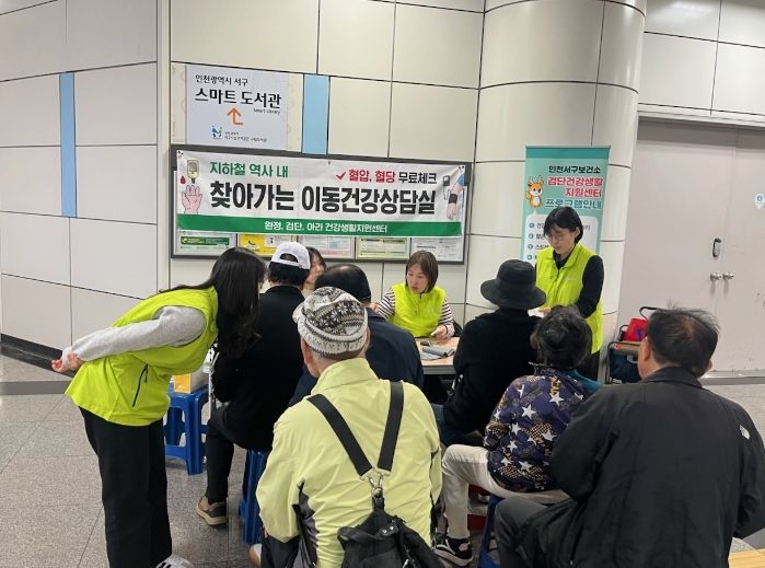 뉴한국방송뉴스통신사 신유철기자 기자 | 인천 서구 검단권역(완정ˑ검단ˑ아라) 건강생활지원센터는 지난 17일 인천지하철 2호선 검단사거리역에서 지역 주민을 대상으로 찾아가는 이동건강삼담실은 운영했다고 밝혔다.