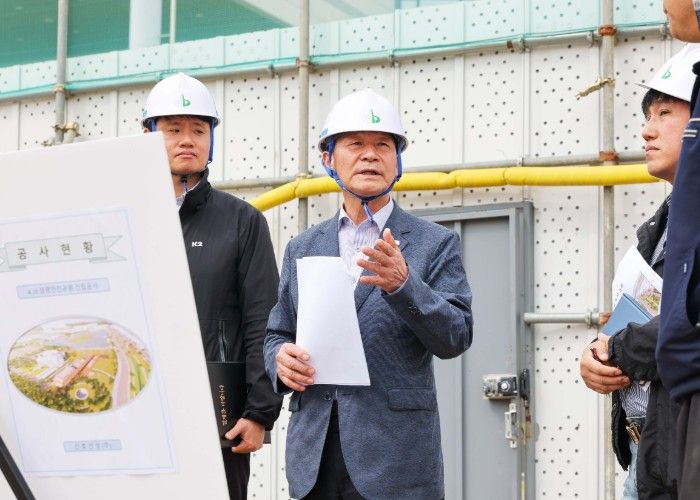 뉴한국방송뉴스통신사 신유철기자 기자 | 안산시의회 박태순 의장이 20일 단원구 초지동 4·16생명안전공원 건립공사 현장을 방문해 공사 진행 상황을 점검하고 안전 시공과 원활한 자재 수급을 당부했다.