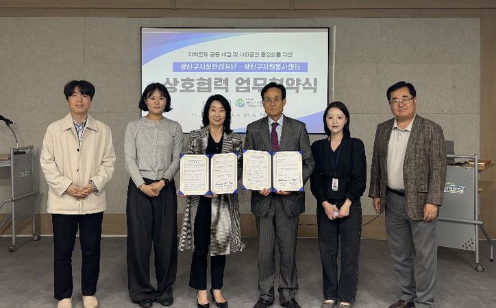 뉴한국방송뉴스통신사 김성의 기자 | 광주광역시광산구시설관리공단은 20일 공단 본부 대회의실에서 광산구자원봉사센터와 ‘지역사회 문제 해결 및 사회공헌 활성화를 위한 업무협약(MOU)’을 체결했다고 밝혔다.