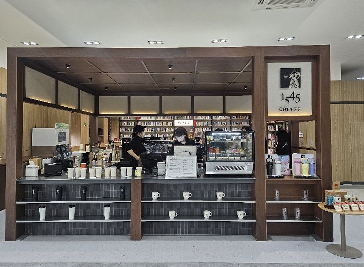 중구청점은 청사 내 기존 카페 공간을 리뉴얼해 조성됐으며, 청사를 방문한 주민들이 편안하게 머물며 휴식과 문화를 함께 누릴 수 있는 공간으로 탈바꿈했다. 공간에는 '1545' 브랜드를 적용한 부스형 카운터와 함께 작은도서관 기능이 더해져, 밝고 따뜻한 분위기 속에서 독서와 휴식을 동시에 즐길 수 있도록 했다. 운영 시간은 평일 오전 8시부터 오후 5시까지다.
