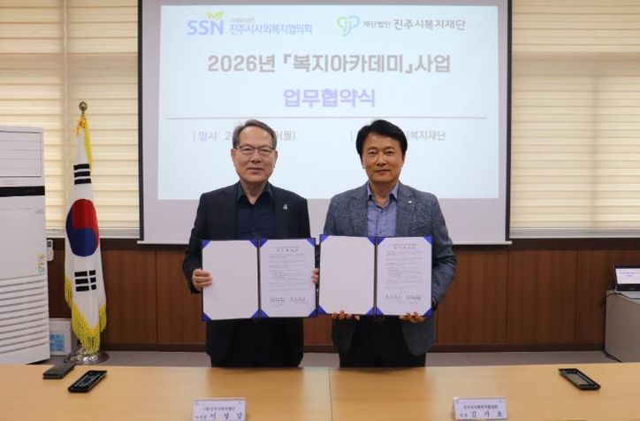 뉴한국방송뉴스통신사 신유철기자 기자 | 진주시복지재단은 지난 20일 재단 회의실에서 진주시사회복지협의회(회장 김기호)와 ‘2026년 복지아카데미 교육 및 사례관리 교육사업’ 운영을 위한 업무협약을 체결했다.