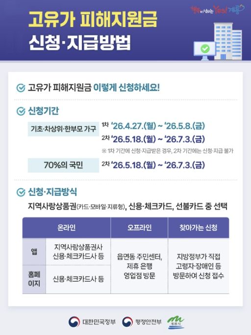 특히, 거동이 불편한 고령자·장애인 등 1인 가구를 위한 ‘찾아가는 신청 서비스’도 운영하며, 거주지 면동사무소에 신청하면 된다.