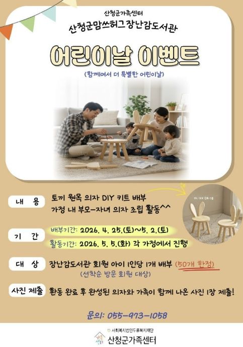 뉴한국방송뉴스통신사 신유철기자 기자 | 산청군가족센터는 어린이날을 맞아 ‘함께여서 더 특별한 어린이날’사업을 추진한다고 21일 밝혔다.