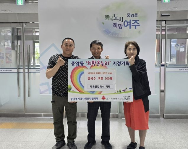 심우봉 중앙동장은 “지역 내 나눔 문화 확산에 동참해주신 세종닭칼국수에 깊이 감사드린다”며 “기부해주신 쿠폰이 꼭 필요한 이웃들에게 전달될 수 있도록 하겠다”고 밝혔다.