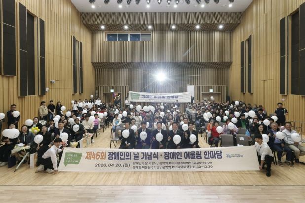 뉴한국방송뉴스통신사 신유철기자 기자 | 가평군은 20일 가평군장애인복지관 주관으로 ‘제46회 장애인의 날 기념식 및 화합 행사’를 개최했다. 음악역1939에서 열린 이번 행사에는 장애인과 시설·단체 관계자, 지역 주민 등 400여 명이 참석해 의미 있는 소통의 시간을 가졌다.