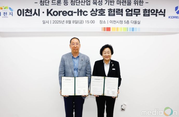 뉴한국방송뉴스통신사 신유철기자 기자 | 이천시는 8월 8일, 한국상호운용성기술자문(KOREA-ITC)과 함께 첨단 드론 산업 육성 기반 마련을 위한 상호 협력 업무협약을 체결했다.
