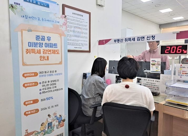 뉴한국방송뉴스통신사 신태공 기자 | 대전 동구는 최근 부동산 경기 침체와 고금리 상황이 지속됨에 따라 주택시장 안정화를 위해 ‘준공 후 미분양 아파트 취득세 감면 혜택’에 대한 집중 홍보에 나선다고 21일 밝혔다.