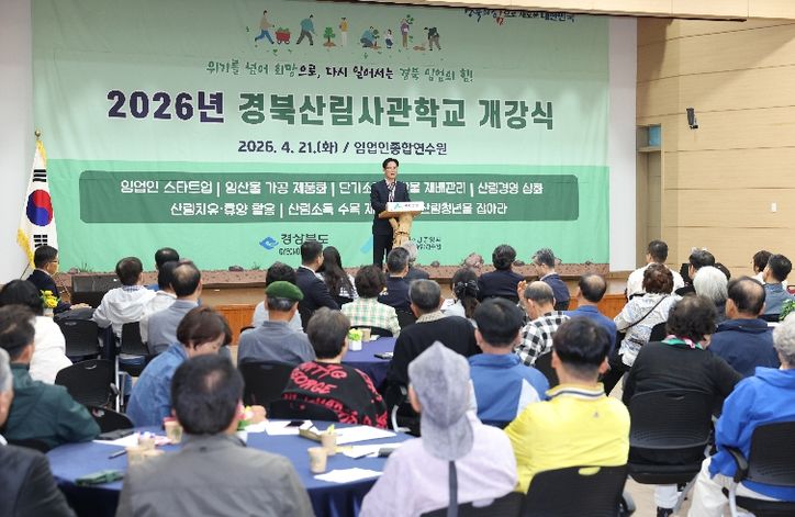 뉴한국방송뉴스통신사 신유철기자 기자 | 경상북도는 4월 21일, 산림조합중앙회 임업인종합연수원에서 교육생 등 160명이 참석한 가운데 ‘2026년 경북산림사관학교 개강식’을 개최했다.