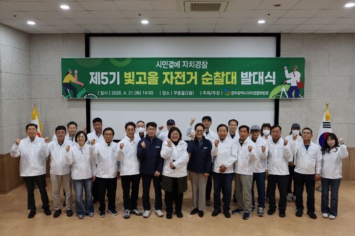 ‘빛고을 자전거 순찰대’는 시민들이 직접 자전거를 타고 지역 곳곳을 누비며 안전 사각지대를 살피는 시민참여형 협력모델이다. 제5기 순찰대는 공개모집을 통해 선발된 45명의 시민으로 구성됐다.