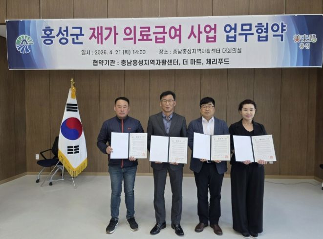 뉴한국방송뉴스통신사 신태공 기자 | 홍성군은 지난 21일 재가 의료급여 대상자의 일상생활 지원 강화를 위해 ▲충남홍성지역자활센터 ▲더마트 ▲체리푸드 등 3개 기관과 업무협약을 체결하고, 식사·이동·주거 개선 등 생활밀착형 서비스 제공 체계를 한층 확대했다.