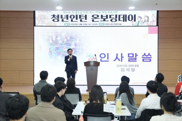 뉴한국방송뉴스통신사 신태공 기자 | 천안시는 22일 시청 대회의실에서 청년인턴의 안정적인 직장 적응을 지원하는 ‘청년인턴 온보딩데이’를 개최했다.