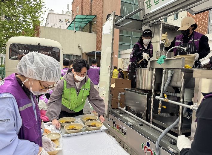 뉴한국방송뉴스통신사 신유철기자 기자 | 연수구자원봉사센터는 21일에 청학노인복지관에서 ‘푸드트럭 온기나눔 짜장차 무료급식’ 활동을 진행했다.