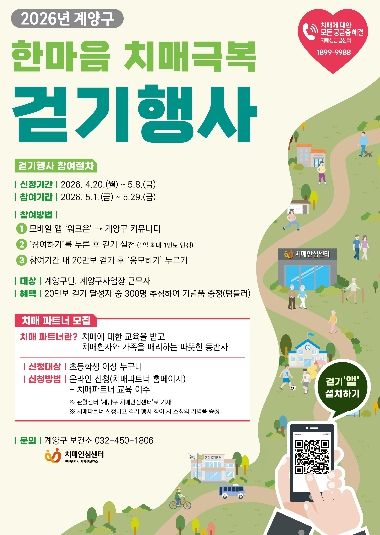 뉴한국방송뉴스통신사 신유철기자 기자 | 인천광역시 계양구는 구민의 치매 예방과 인식 개선을 위해 5월 1일부터 29일까지 4주간 ‘2026년 계양구 한마음 치매극복 걷기행사’를 개최한다.
