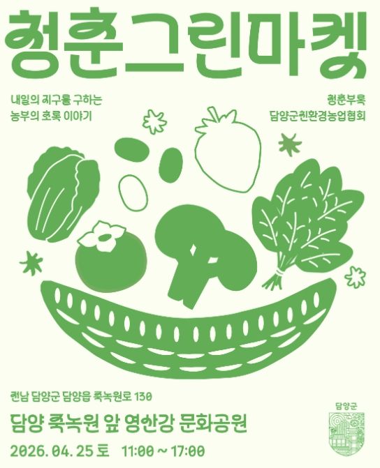 뉴한국방송뉴스통신사 신다은기자 기자 | 담양군친환경농업협회가 오는 25일 오전 11시부터 오후 5시까지 죽녹원 앞 영산강 문화공원에서 ‘제2회 청춘그린마켓’을 연다.