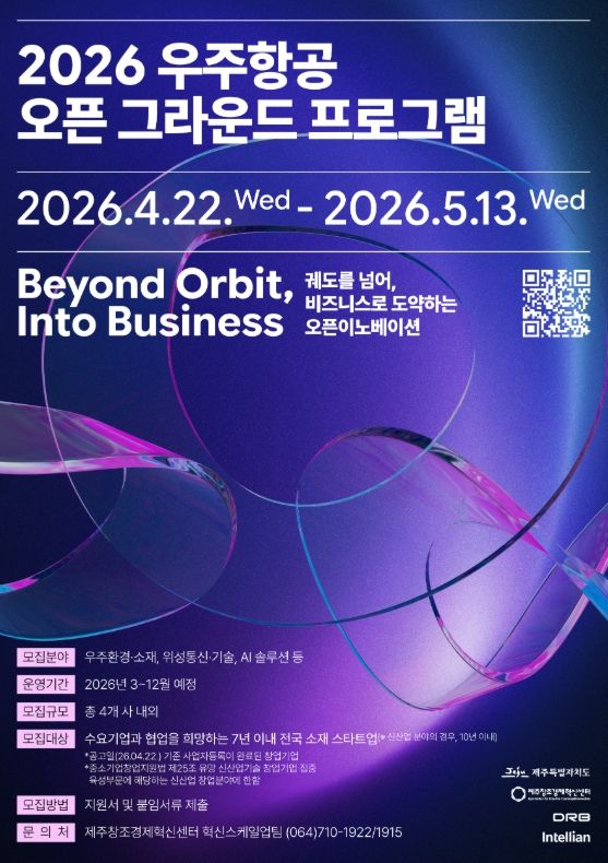 한편 ‘2026 우주항공 오픈 그라운드’ 모집공고와 관련한 자세한 정보는 제주창경센터 공식 홈페이지 및 프로그램 안내 페이지를 통해 확인할 수 있다.