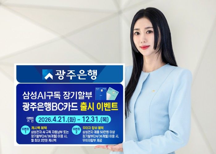 뉴한국방송뉴스통신사 김성의 기자 | 광주은행은 지난 21일, 삼성전자 AI 구독클럽 서비스 이용 고객 및 삼성스토어에서 장기할부를 이용하고자 하는 고객을 위한 특화 상품인 ‘삼성 AI구독 장기할부 광주은행BC카드’를 출시했다고 밝혔다.