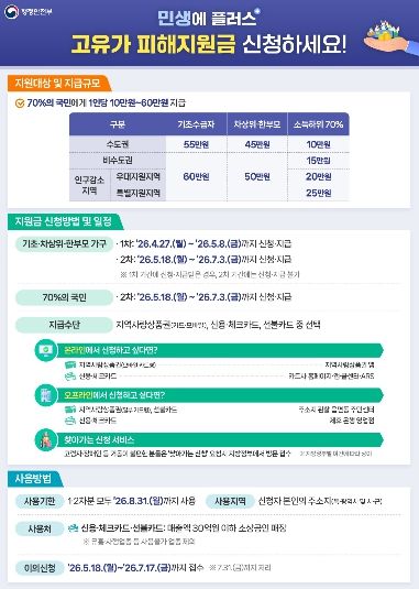 한편 장재혁 합천군수 권한대행은 “고유가 피해지원금 사용기한(2026.8.31.까지)과 경남도민 생활지원금 사용기한(2026.7.31.까지)이 상이함에 따라 군민들이 사용에 혼선이 없도록 당부드린다”며 “모든 군민이 빠짐없이 지원을 받을 수 있도록 업무 추진에 만전을 기하겠다”고 밝혔다.
