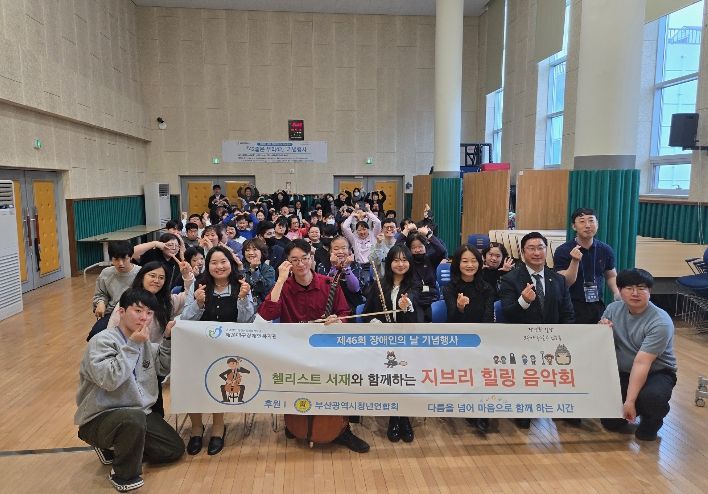 장애인의 날을 기념해 14일 해운대구 장애인복지관에서 ‘지브리 힐링 음악회’를 열었다. ‘다름을 넘어 마음으로 함께하는 시간’을 주제로 첼리스트 서재, 조수임 재즈트리오가 음악으로 위로와 공감을 전했다. 이웃집 토토로, 하울의 움직이는 성 등 친숙한 지브리 영화 음악을 연주해 장애인과 아동들에게 감동을 선사했다.