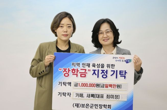 뉴한국방송뉴스통신사 권영분기자 기자 | 충북 보은군은 23일 ‘카페, 새록’ 최미정 대표가 지역 인재육성을 위한 장학금 100만 원을 보은군민장학회에 기탁했다고 밝혔다.