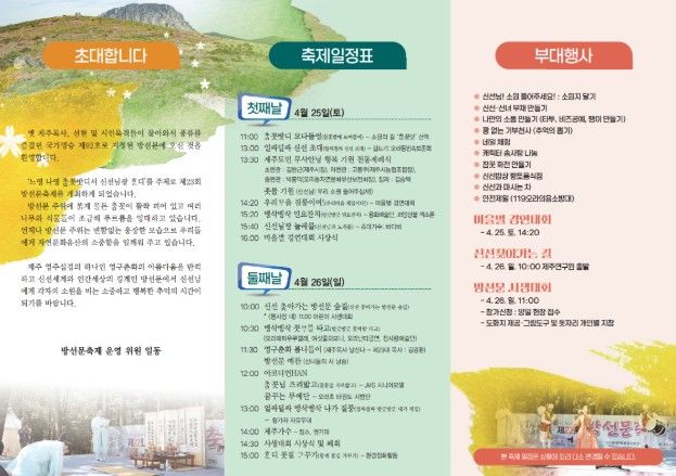 축제 첫째 날 열리는 무사안녕 제주도민 행복기원제에서는 현원돈 제주시 부시장이 초헌관 역할을 맡아 도민 모두의 무사안녕과 행복을 기원하는 뜻깊은 시간을 함께할 예정이다.