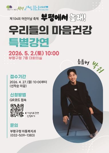 뉴한국방송뉴스통신사 신유철기자 기자 | 부평구는 제104회 어린이날을 맞아 오는 5월 2일 구청에서 어린이와 가족이 함께 즐길 수 있는 다채로운 행사를 개최한다고 밝혔다.