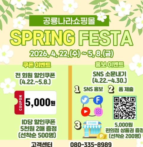 이수원 농식품유통과장은 “이번 행사를 통해 공룡나라쇼핑몰 신규 회원 유입을 확대하고, 적극적인 구매를 유도해 입점 농가와 업체의 온라인 판로 확대에 실질적인 도움이 될 것으로 기대한다”고 밝혔다.
