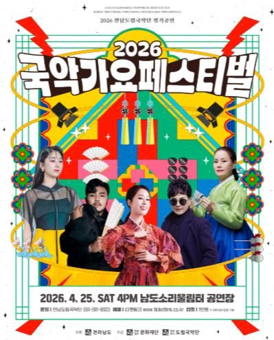 뉴한국방송뉴스통신사 신다은기자 기자 | 전남도립국악단은 25일 오후 4시 무안 남도소리울림터 공연장에서 2026년 정기공연 ‘국악가요 페스티벌’을 개최한다.