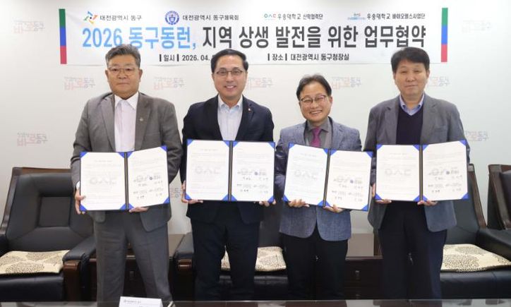 뉴한국방송뉴스통신사 신태공 기자 | 대전 동구는 23일 구청장 접견실에서 우송대학교‧동구 체육회와 ‘동구동런(Run)’ 운영 활성화를 위한 업무협약을 체결했다고 밝혔다.
