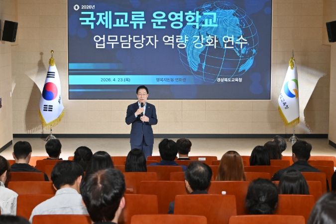 뉴한국방송뉴스통신사 신유철기자 기자 | 경북교육청은 23일 본청 행복지원동 연화관에서 도내 국제교류 운영교 업무 담당자와 관리자 등 150여 명이 참석한 가운데 ‘2026년 국제교류 운영학교 업무 담당자 역량 강화 연수’를 개최했다고 밝혔다.