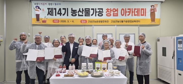 한편 고성군은 수료생을 대상으로 마케팅 심화교육과 제품개발반 운영 등 후속 지원 프로그램을 통해 농산물 가공 창업을 단계적으로 지원해 나갈 계획이다.