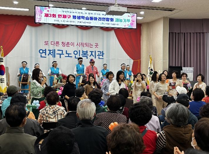 뉴한국방송뉴스통신사 신유철기자 기자 | 연제구는 지난 4월 22일 연제구노인복지관에서 지역 어르신 70여 명이 참석한 가운데, 동아리연합회(회장 이경희) 주관으로 동아리 공연 및 학습체험 재능기부 행사를 개최했다.