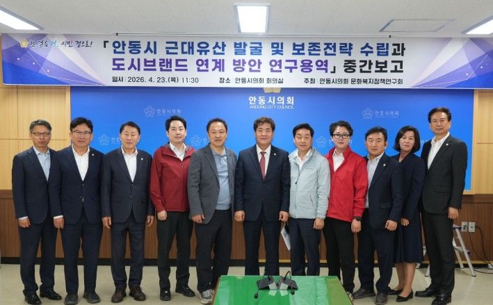 뉴한국방송뉴스통신사 신유철기자 기자 | 안동시의회 문화복지정책연구회는 23일 안동시의회 회의실에서‘안동시 근대유산 발굴 및 보존 전략 수립과 도시브랜드 연계 방안 연구용역’중간보고회를 개최하고, 연구 추진 현황을 점검하는 한편 향후 정책 방향에 대해 논의했다.