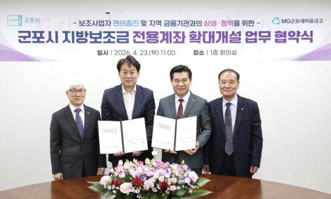 하은호 군포시장은 “이번 협약은 지방보조금 전용계좌 개설 금융기관을 확대하여 보조사업자의 이용 편의를 제고하고, 지역 금융기관과의 상생 협력 기반을 강화하는 데 의의가 있다”며 “앞으로도 관련 제도 개선과 운영체계 고도화를 통해 지방보조금 관리의 투명성과 효율성을 지속적으로 강화해 나가겠다”고 밝혔다.