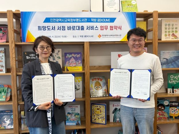 뉴한국방송뉴스통신사 신유철기자 기자 | 인천광역시교육청부평도서관은 지난 22일 '책방 쿰'과 ‘희망도서 서점 바로대출 서비스’ 업무협약을 체결했다.